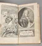 VOLTAIRE. LA HENRIADE OU SONT JOINTS LES POÈMES SUR LA BATAILLE DE FONTENOY, ET L'ÉPÎTRE A SON ALTESSE MADAME LA DUCHESSE DU MAINE, SUR CELLE DE LAUFELDT, gagnées par Louis XV. Les 11 may 1745 & 2 juillet 1747. Avec des figures en taille-douce, & les plans & la représentation de ces batailles. AMSTERDAM, AUX DEPENS DE LA COMPAGNIE, 1748. Un volume, in-12, de (2) ff., VI pp., (1) f., 263 pp., (3) ff., 155 pp., (2) ff., 96 pp., puis page 153 à la page 211, pleine reliure de l'époque en veau brun. Dos à 5 nerf cloisonné, fleuronné et doré portant une pièce de titre en maroquin rouge, triple filet d'encadrement sur les plats, filets dorés sur les coupes, roulette intérieure dorée, tranches dorées. Petites usures aux coins, déchirure sur une pliure de la carte. Nouvelle édition, revue, corrigée & augmentée par Mr. de Voltaire.