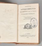 COLLECTIF - MISSIONS - ÉTRANGÈRES. NOUVELLES LETTRES ÉDIFIANTES DES MISSIONS DE LA CHINE. PARIS, DE L'IMPRIMERIE D'ADRIEN LE CLERE, 1818 - 1823. Huit volumes, in-12, demi-reliures de l'époque en basane marron. Dos lisses portant les pièces de titre et de tomaison en basane noire, tranches jaspées. Atteintes du temps sur quelques volumes, attaques sur le mors du second plat. Peu courant complet de ses huit volumes.