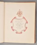 2) Bref de S. S. le Pape Léon XIII au p. Marcel Bouix de la Compagnie de Jésus, imprimé en rouge et noir dans un cartouche "genre parchemin", gouaché rouge et or, surmonté des Armes du Vatican et suivi des Armes de Léon XIII gouachées et dorées à la main ; le tout entouré d'un fin décor d'arabesques de fleurs et feuilles.