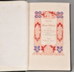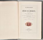 L'IMITATION DE JÉSUS - CHRIST [Attribuée à Thomas Kempis]. Traduction nouvelle de M. l'ABBÉ D'ASSANCE, chanoine honoraire de Montauban. Avec des réflexions tirées des Pères de l'Église et de Bossuet, Fénelon, Masssillon et Bourdaloue. Illustrée par MM. Tony Johannot et Cavelier. PARIS, CURMER 1836. Un volume, in-8, de (1) f. titre frontispice, VIII pp., 440 pp., pleine reliure en aie de bois habillée de velours bleu - nuit, toutes tranches dorées. Chemise cartonnée, double étui cartonné habillé de papier marine (décollé en bord des côtés inférieur et supérieur). Sur la première garde un ex-dono calligraphié : "Offert à Mr. Chalandon Chanoine titulaire & Vicaire Général par la Cts. ch Hemellé. Metz 1843 10 Mars".