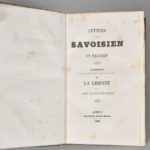 [RENDU Louis]. LETTRES D'UN SAVOISIEN A UN FRANÇAIS. Fragments d'un ouvrage inédit ayant pour …
