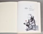 Envoi autographe signé de Jacques Tardi à Tanguy Offmann enrichi d'un dessin original au feutre noir représentant Bardamu, le visage inquiet et de profil.