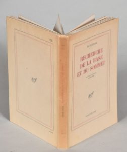 CHAR René. RECHERCHE DE LA BASE ET DU SOMMET. Nouvelle édition augmentée. PARIS, N. R. F., …