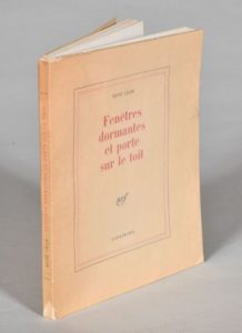 CHAR René. FENÊTRES DORMANTES ET PORTE SUR LE TOIT. PARIS, N. R. F. GALLIMARD, 1979. Un volume, …