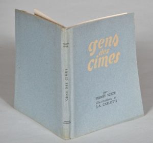 SCIZE Pierre - CARLOTTI. GENS DES CIMES. LYON - PARIS, ÉDITIONS LUGDUNUM, 1945. Un volume, in-8 carré, broché, couverture de papier fort bleuté, rempliée. Titre en noir au dos, et sur le premier plat en larges lettres dorées.