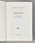YOURCENAR Marguerite. SOURCE II. Texte établi et annoté par Élyane Dezon Jones, présenté par Michèle Sarde. PARIS, GALLIMARD N. R. F., 1999. Un volume, in-8, broché, feuilles non coupées. Édition originale posthume dont il a été tiré 43 exemplaires numérotés sur vélin pur chiffon de Lana, celui-ci n° 22.
