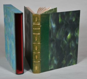 ANONYME [AMANDINE DORÉ]. FLORILÈGE. s. l., s. n., s. d. (vers 1960). Un volume, in-4, demi-reliure en basane verte. Dos à 5 nerfs orné et doré portant le titre doré, couverture et dos conservés, étui bordures peau. Dos très légèrement et uniformément éclairci. Vingt gravures sur cuivre de Madame *** (attribuées à Amandine Doré).