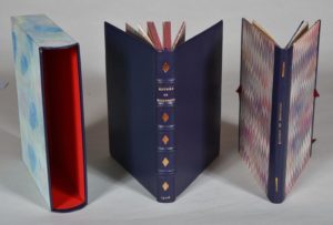 [ANONYME]. HISTOIRE DE GOUBERDOM PORTIER DES CHARTREUX. BRUXELLES, 1946. Un volume, in-4, pleine reliure en veau marine. Dos à 5 nerfs décoré et doré portant le titre doré, tête rouge, couverture conservée. Un volume renfermant deux suites, chemise rigide à rabats, dos en veau marine portant le titre doré en long, un lacet de soie rouge. Les deux volumes dans un étui bordure peau. Bel exemplaire. Illustrations libres.