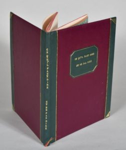 [ANONYME]. CE QU'IL FAUT DIRE ET NE PAS DIRE !... s. l., s. n., s. d. Un volume, in-4, demi-reliure à bande en basane bronze. Dos lisse portant le titre doré à la chinoise. Titre répété et doré sur le premier plat grâce à une pièce de basane bronze, tête rouge. Bel exemplaire. Recueil de contre pétries illustrées de 60 lithographies libres.