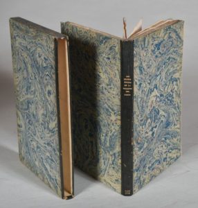 FAVRE M. de. LES QUATRE HEURES DE LA TOILETTE DES DAMES, poëme érotique en quatre chants, dédié à son Altesse Sérénissime Madame la Princesse de Lamballe, Chef du Conseil, & Surintendante de la Maison de la Reine. PARIS, CHEZ JEAN - FRANÇOIS BASTIEN, 1779. Un volume, grand in-8, couverture papier bleuté de l'époque (petites salissures, usures au dos) dans une chemise cartonnée à rabat, dos habillé de sombre et portant le titre doré, étui bordure peau. Réparations en marge des derniers feuillets. Édition originale très rare, délicieusement illustrée d'un frontispice, d'une vignette de titre, de 4 figures et 4 culs-de-lampe. Les gravures par Leclerc sur velin avec encadrement floraux montrent toutes des jeunes filles dénudées (Diane, Thétis, Europe...). L'ensemble du livre imprimé sur vélin. Explication des gravures.