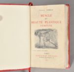 HÉBERT Georges. MUSCLE ET BEAUTÉ PLASTIQUE FÉMININE. PARIS, LIBRAIRIE VUIBERT, 1942. Un volume, in-8, pleine reliure en basane rouge. Dos lisse portant le titre en noir, décor personnalisé au trait, en noir, sur le premier plat, couverture et dos conservés. Nombreuses illustrations d'après des photographies.