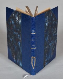 LARGUIER Léo. LA POUPÉE. PARIS, BRIFFAUT, 1925. Un volume, in-8, demi-reliure à coins en peau maroquinée bleue. Dos lisse décoré d'un motif doré et portant le titre doré, tranches décorées de motifs dorés, couvertures conservées. Illustré en couleurs d'après les dessins érotiques de Chas Laborde.