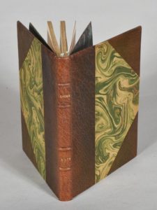 LUCIUS. L'ANE. Traduction de Paul - Louis Courier. PARIS, A LA RENAISSANCE DU LIVRE, 1922. Un volume, in-8, demi-reliure à coins en basane ardoise. Dos à 4 nerfs portant le titre doré, tête dorée, couverture et dos conservés. Dos légèrement et uniformément éclairci. Avec des illustrations en couleurs de Marcel Roux.