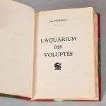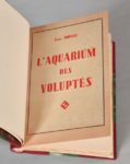MOUILLE Jean. L'AQUARIUM DES VOLUPTÉS. s. l., s. n., s. d. [Toulouse, Francis Flores, fin des années 50). Un volume, in-8, demi-reliure à coins en maroquin cerise. Dos à 5 nerfs portant le titre doré, tête rouge, couverture et dos conservés. Étui bordures peau. Illustrations très libres hors texte.