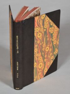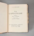 NOUGARET P. J. B. LA CAPUCINADE. Préface de Henry Frichet. PARIS, LES BIBLIOPHILES LIBERTINS, 1928. Un volume, in-8, demi-reliure à coins en peau chagrinée noire. Dos lisse portant le titre doré en long, tête rouge, couverture conservée. Illustration de Maurice L'Hoir dont un frontispice en couleurs.