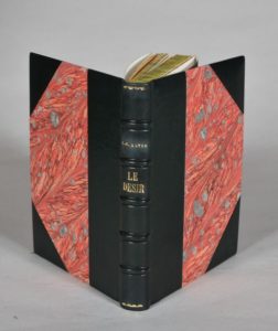 ROYER Louis - Charles. LE DÉSIR. PARIS, AUX ÉDITIONS ARC - EN - CIEL, 1946. Un volume, in-8 carré, demi-reliure à coins en basane noire. Dos à 5 nerfs décoré et portant le titre doré, tête jaspée, couverture et dos conservés. 30 Illustrations érotiques en couleurs de Schem.