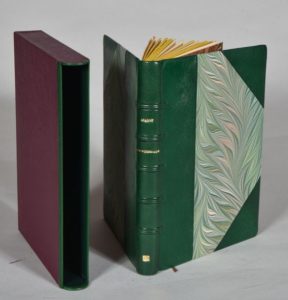 SPADDY [Renée Dunan]. DÉVERGONDAGES. Souvenirs érotiques. SAINT - RAPHAËL, A LA FONTAINE DES NYMPHES, s. d. [Paris, Maurice Duflou, 1937]. Un volume, in-8, demi-reliure à coins en chagrin vert. Dos à 5 nerfs portant le titre doré, tête jaune, non rogné, couverture conservée. Étui bordure peau. Illustré par 10 gravures (sur 12 ?) en couleurs très libres, non signées.