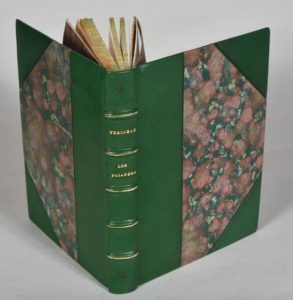 VÉRINEAU Alexandre de. LES PRIAPÉES. Publiées pour la première fois et suivies de notes curieuses par Helpey. EROTOPOLIS, CHEZ JEAN CHOUARD, 1920. Un volume, in-8, demi-reliure à coins en chagrin vert. Dos à 5 nerfs roulette dorée sur les nerfs et titre doré, tête jaspée, couverture conservée. Étui bordures peau. Bel exemplaire. La présente édition a été tirée à 350 exemplaires, non mis dans le commerce, sur fort papier vergé d'Arches, paraphés par l'auteur et entièrement réservés aux souscripteurs.