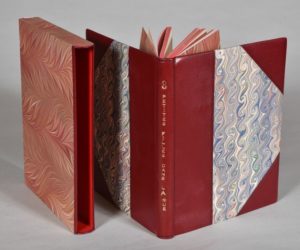 WARNOD André. 3 PETITES FILLES DANS LA RUE. ÉDITIONS DE LA FANFARE DE MONT PARNASSE, 1925. Un volume, in-4, demi-reliure à coins en chagrin bordeaux. Dos lisse portant le titre à la chinoise, tête rouge, couverture et dos conservés, étui bordures peau. Bel exemplaire. Comportant 35 illustrations en couleurs de Pascin.