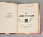 WILLY (Henri Gauthier-Villars, dit). LES APHRODISIAQUES. PARIS, ÉDITIONS MONTAIGNE, s. d. (1957). Un volume, in-8 carré, demi-reliure à coins en peau maroquinée cerise. Dos lisse décoré et doré portant le titre doré en long., tête rouge, couverture conservée. Ex-libris manuscrit sur la page de titre. Texte rare. Bon exemplaire.
