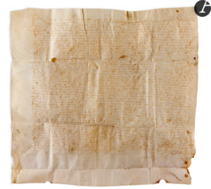 [CALVADOS]. — Deux chartes du XVIe siècle. — En français, actes sur parchemin. - Litige entre Nicolas de Vaudeville, Pierre de l’Estrade, Thibault de l’Estrade, Jan de l’Estrade et Pierre Bertrand contre Denyse de l’Estrade. —...