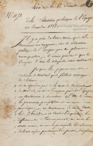 - De la situation politique de l’Espagne en décembre 1818. Londres, le 12 décembre 1818. Rapport numéro 1071. 33 pp. + [3] ff., signature autographe du Comte de Beaumont-Brivazac.