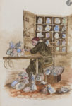 Bel album avec compositions aquarellées, certaines fort originales, liant monogrammes et armoiries contrecollées (que l’on voir fréquemment sur des papiers à entête) à des dessins divers. Nous ne savons pas quel graveur ou héraldiste a pu constituer cet album.