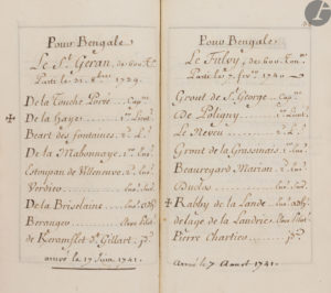 Précieux éléments sur la Compagnie des Indes, les comptoirs français en Inde et en Asie. On signalera les sections telle « Vaisseaux partis pour les Indes de 1740 à 1741 ».