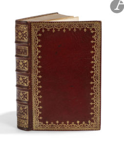 Maroquin rouge, roulette dorée en encadrement sur les plats, dos à nerfs orné, roulette dorée intérieure, tranches dorées (reliure de l’époque).