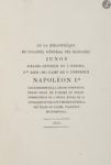 « De la bibliothèque du Colonel Général des Hussards Junot, Grand-Officier de l’Empire, 1er aide-de-camp de l’Empereur Napoléon Ier, Grand-Cordon de la Légion d’Honneur, Grand-Croix de l’Ordre du Christ, Commandeur de l’Ordre Royal de la couronne de fer, Gouverneur Général des États de Parme, Plaisance et Guastalla. 1806 ».