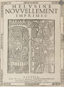 *ARRAS (Jean d’). — Melusine nouvellement imprimée. — Troyes : Nicolas Oudot, 1624 [1625]. — In-4, 204 x 150 : (68 ff.).