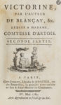[GORJY (Jean-Claude)]. — Victorine, par l’auteur de Blançay, &c. — Paris : Guillot, 1er Mai 1789. — 2 volumes in-18, 129 x 80 : frontispice, 4, 237 pp., (1 f. blanc) ; frontispice, (1 f.), 211 pp.