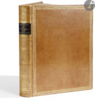 Veau blond, roulettes dorées en encadrement sur les plats, dos lisse orné à la grotesque, roulette dorée intérieure, tranches dorées (Bozérian jeune).