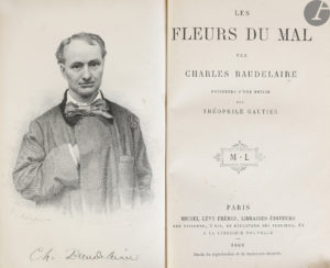 – I. Les Fleurs du mal. Précédées d’une notice par Théophile Gautier. 1868. — Portrait, (2 ff.), 411 pp