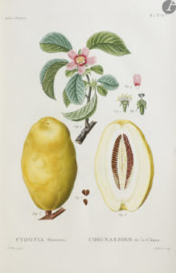 de la floraison et de la maturité de leur fruit, les usages économiques et médicaux, le lieu natal, l’époque ou ils ont été apportés en Europe et des remarques sur leurs noms anciens et modernes. — Paris : Librairie encyclopédique de Roret, [1850]. — 2 volumes in-folio, 397 x 256 : (3 ff.), 23, 44 pp., (pp. 103-104, pp. (45)-254, titre gravé, 78 planches ; (3 ff.), 226 pp., 67 planches.