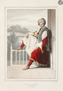 DUPRÉ (Louis). — Voyage à Athènes et à Constantinople, ou collection de portraits, de vues et de costumes grecs et ottomans. — Paris : Imprimerie de Dondey-Dupré, 1825-[1838]. — In-folio, 576 x 415 : (3 ff.), 52 pp., 41 planches.