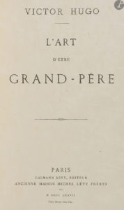HUGO (Victor). — L’Art d’être grand-père. — Paris : Calmann Lévy, 1877. — In-8, 225 x 152 : (4 ff. 2 derniers blancs), 323 pp.