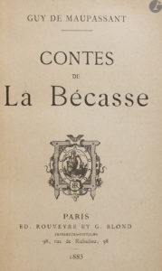 *MAUPASSANT (Guy de). — Contes de La Bécasse. — Paris : Ed. Rouveyre et G. Blond, 1883. — In-18, 184 x 116 : 298 pp., (1 f.), couverture imprimée.