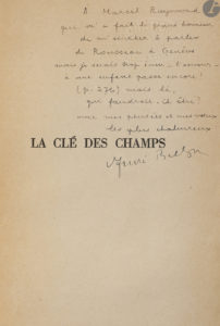 BRETON (André). — La Clé des champs. — Paris : Éditions du Sagittaire, [1953]. — In-8, 227 x 143 : 283 pp., (2 ff.), 9 planches, couverture imprimée.