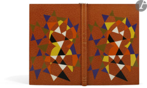 Maroquin havane, plats ornés d’un décor abstrait polychrome laqué, dos lisse, tête dorée, non rogné, couverture et dos conservés, étui bordé (Devauchelle).