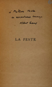 CAMUS (Albert). — La Peste. — Paris : Gallimard, [1949]. — In-12, 187 x 120 : 337 pp., (1 f.), couverture imprimée.