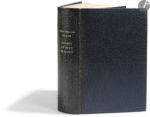 Maroquin bleu foncé janséniste, dos lisse, doublures de velours bleu foncé bordé d’un listel de maroquin rouge, gardes de velours bleu foncé, tête dorée, non rogné, couverture et dos conservés, étui bordé (A. Bourdet).