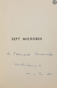 ERNST (Max). — Sept microbes vus à travers un tempérament. — Paris : Les éditions des Arts, [1953]. — In-12, 185 x 130 : (40 ff. premier et dernier blancs), couverture illustrée.