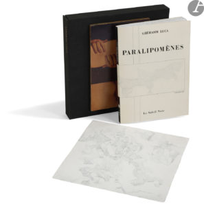 Édition collective en partie originale de ce recueil poétique de Ghérasim Luca, illustrée de 3 compositions de l’auteur dont une sur le titre et 2 à pleine page.