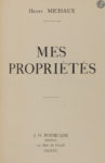 *MICHAUX (Henri). — Mes propriétés. — Paris : J.O. Fourcade, [1929]. — In-12, 190 x 137 : 133 pp., (1 f.), couverture imprimée.