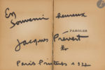 PRÉVERT (Jacques). — Paroles. Édition revue et augmentée. — Paris : NRF, [1956]. — In-8, 192 x 140 : 293 pp., (1 f.), couverture imprimée. Broché.