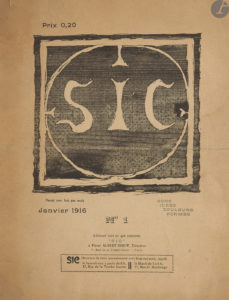SIC est un des lieux où la poésie exerce tout le jeu de sa réalité graphique. Avec ce soin va de pair le souci régulier d’illustration : expressions plastiques futuristes, dessins cubistes, décors de ballet ou de théâtre, reproductions de sculptures font partie de la revue. Enfin, bien sûr, toute la gamme des petits échos, entrefilets, annonces — “Un ouvrage sur l’art nègre.