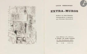 ANNENKOFF (Georges) – CHERONNET (Louis). — Extra-muros. Préface de Jules Romains. — Paris : Au Sans pareil, 1929. — In-4, 287 x 225 : frontispice, 186 pp., (3 ff. 2 derniers blancs), 25 planches, couverture imprimée.