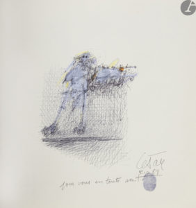 Le tirage de ce catalogue fut limité à 700 exemplaires. Celui-ci est l’un des 200 premiers accompagnés d’une sérigraphie sous plastique numérotée et signée par César.