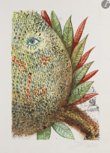 Superbe et monumentale édition, illustrée d’une aquarelle de Salvador DALI (1904-1989) reproduite en lithographie sur japon nacré, de 3 estampilles originales sur papier chiffon d’Étienne HAJDU (1907-1996) et de 3 lithographies originales sur japon nacré de Berto LARDERA (1911-1989).